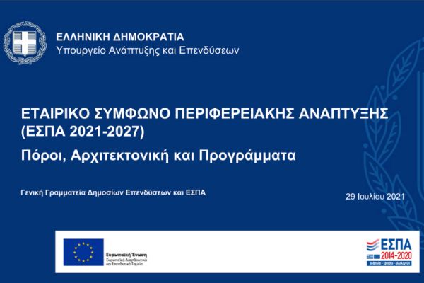 Το νέο ΕΣΠΑ 2021-2027, με τον τίτλο «Εταιρικό Σύμφωνο Περιφερειακής Ανάπτυξης 2021-2027», αναμένε…
