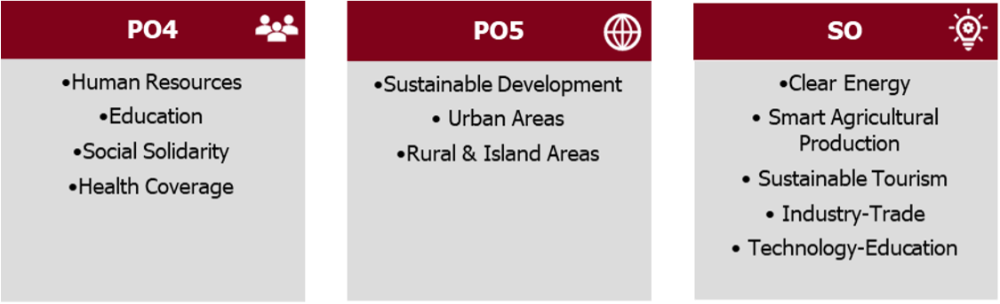 The NSRF 2021 – 2027 serves the following (5) basic Policy Objectives (PO) and (1) Specific Objective (SO):